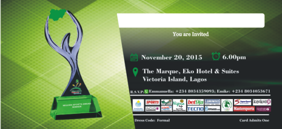 The Nigerian Sports Award 2015 was held on the 20th of November at the Marquee, Ocean View Garden, Eko Hotels and Suites, Victoria Island Lagos.